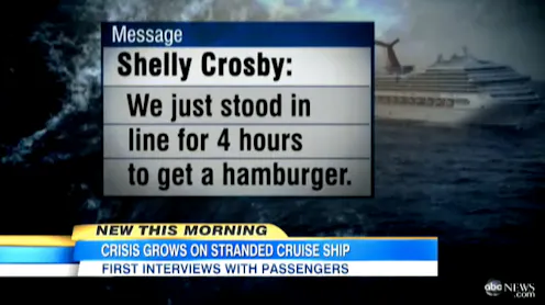The counter narrative of the Carnival Triumph story lies in the simple premise of deserving vs undeserving victims. Apparently people who can afford to take cruises don’t deserve our sympathies. A popular class contempt frame.