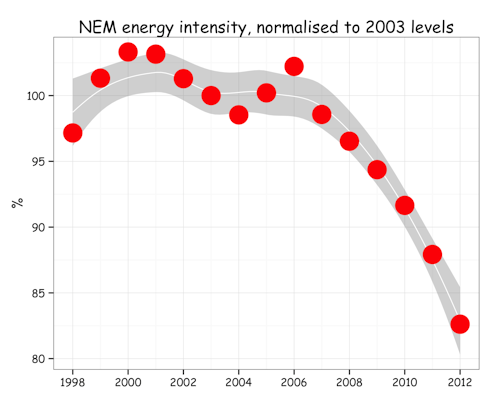 In response to a question I asked about this very point, Greg Hunt responded that the reductions reflect the dramatic and largely unanticipated downturn in electricity demand following the GFC. And this isn’t necessarily a great thing.