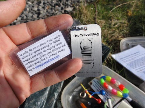 The game involves creating and exchanging “travel bugs”. These are objects as innocuous as an old whistle or a teddy bear that carry identification tags and are assigned goals by their creators. Geocachers collaborate to help the travel bug move from one cache to another.